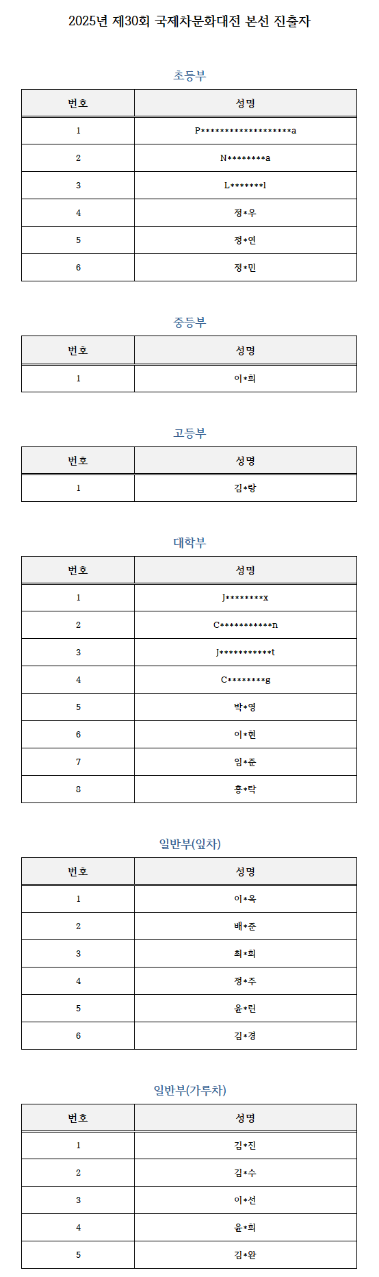 2025년 제30회 명원 국제차문화대전 본선 진출자 안내